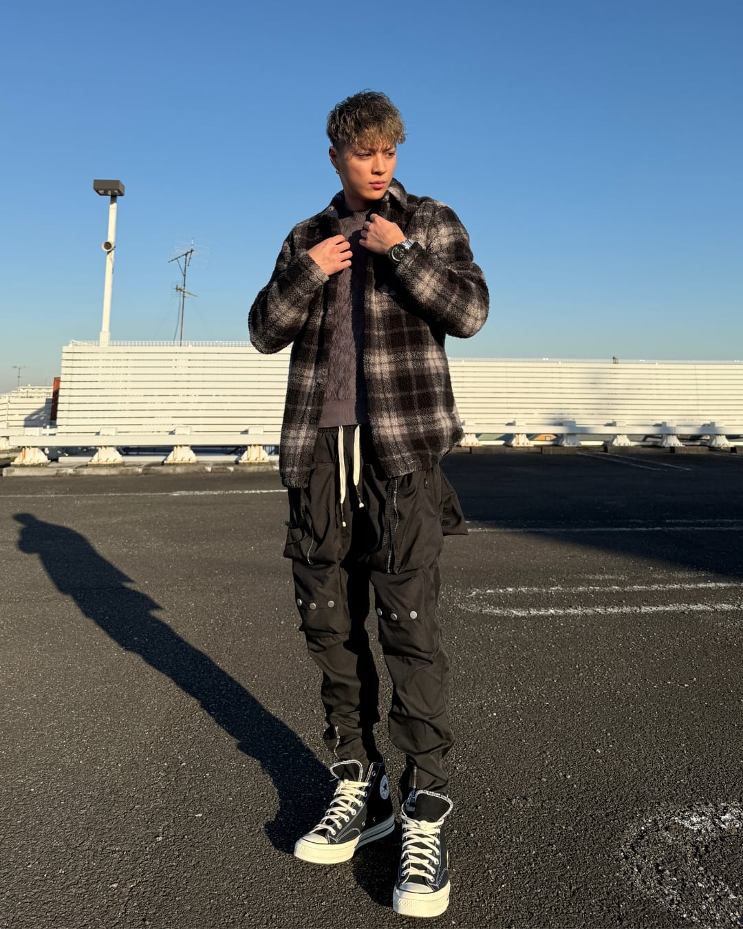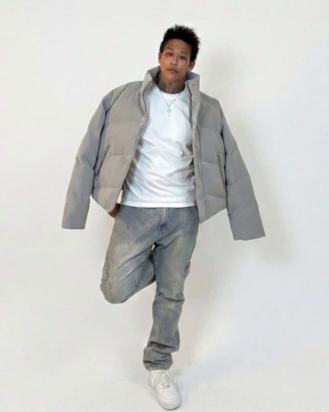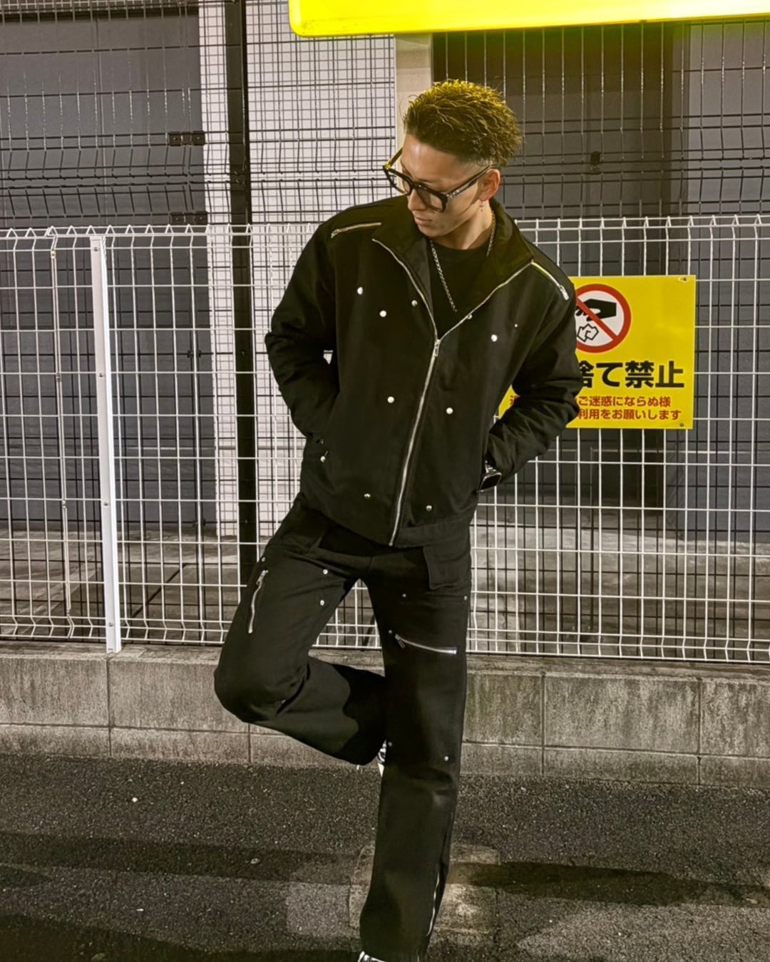 【最短翌日発送!お得なコーデ販売!】着るだけで完成設計|存在感で差がつくオールブラックコーデ (マルチジップデニムパンツ P00006 × スタンドカラーダウンジャケット OU00002)
