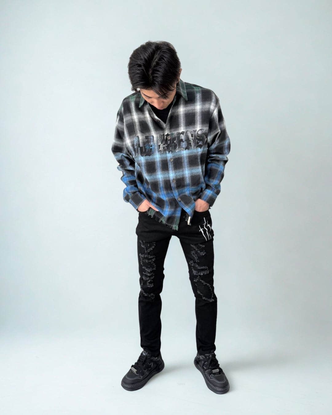 【最短翌日発送】着るだけで完成設計|存在感で差がつくオールブラックコーデ(P00006×OU00002)