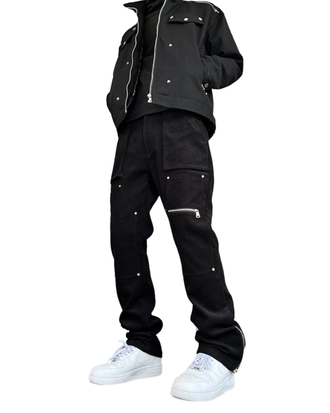 【最短翌日発送】脚長設計|マルチジップデニムパンツ(P00006)