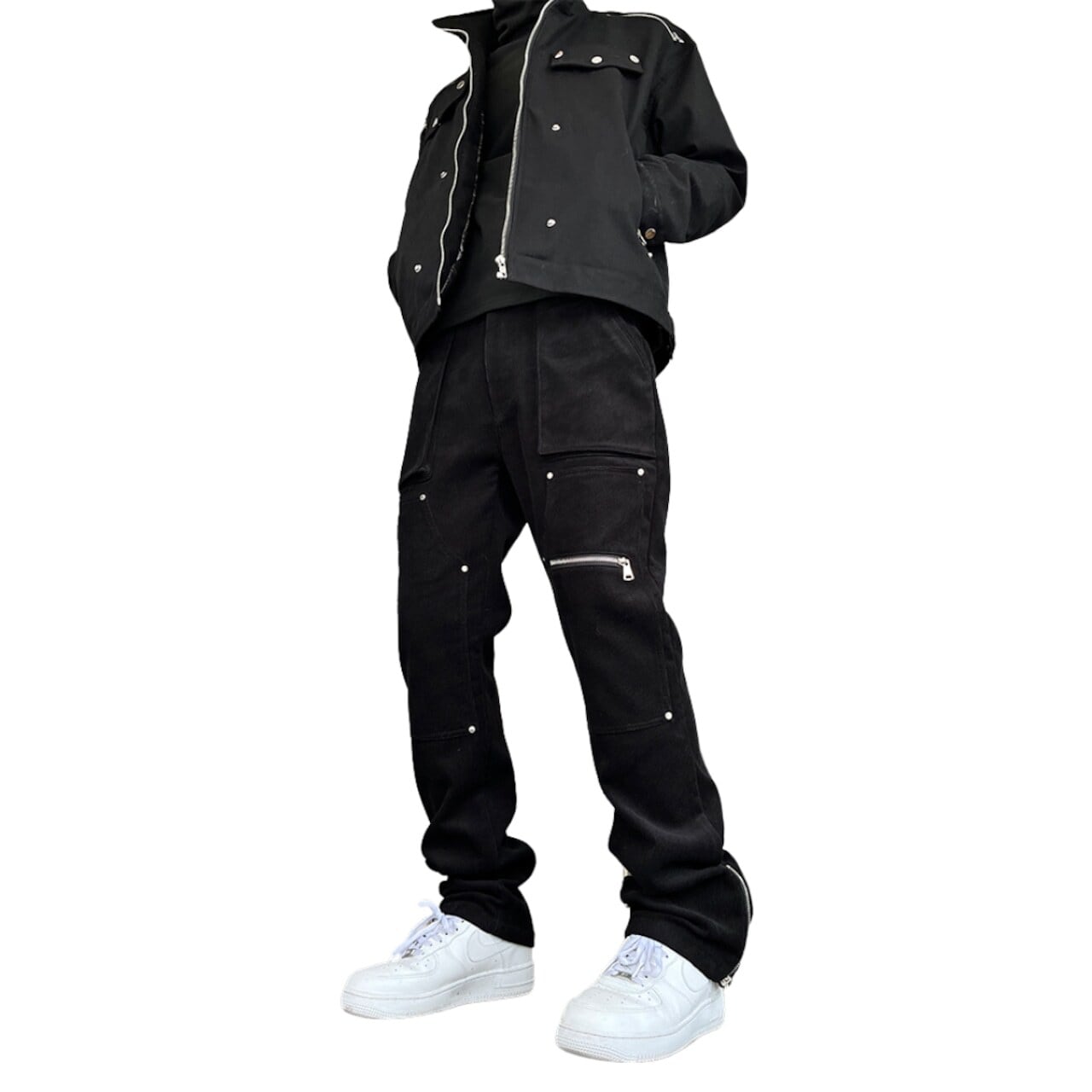 【コーデ販売】マルチジップデニムパンツ(P00006)× スタンドカラーダウンジャケット(OU00002)