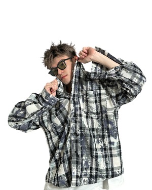 下半身をスッキリ見せるために設計されたチェックシャツです。