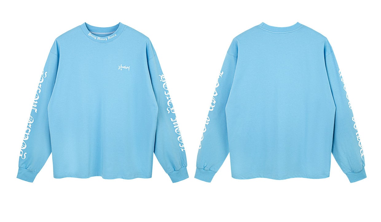 フロントはミニマルに仕上げながら、両袖にオールドイングリッシュ調のレタープリントを大胆に配置。