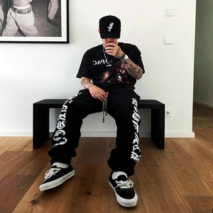 【ストリートに響くメッセージを脚に刻む、存在感抜群のスウェットパンツ】