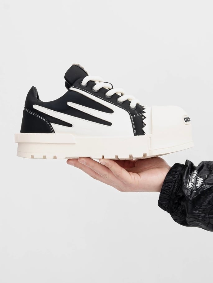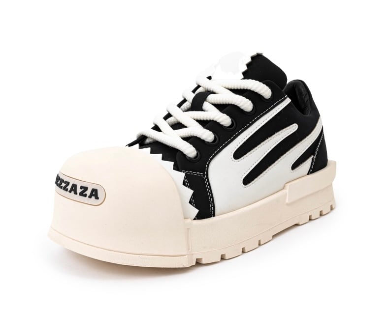 インパクト抜群のボリュームトゥが特徴的なビッグヘッドスニーカー。