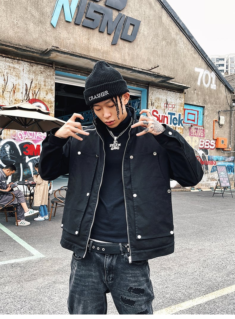・ ビーニーやチェーンアクセサリーを加えて、冬のストリートコーデを完成