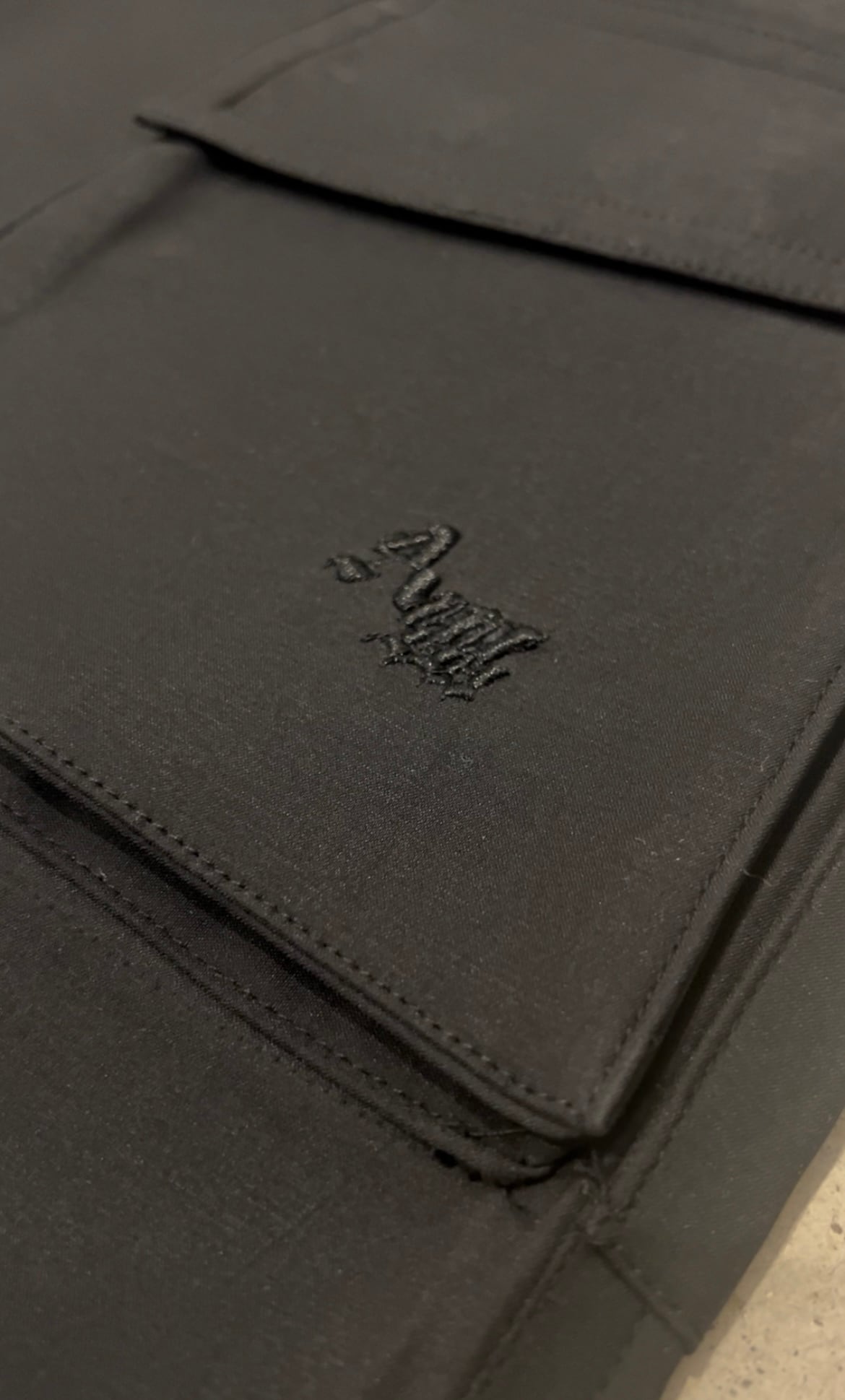 ADWENSらしさを象徴する長めのドローコードに、ロゴ入りのカーゴポケット、そして裾のジップ仕様。