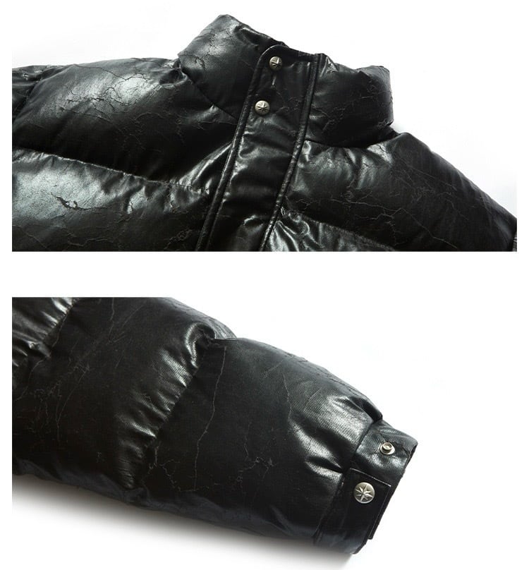 艶やかなブラックPUレザーに独特のクラック加工を施し、