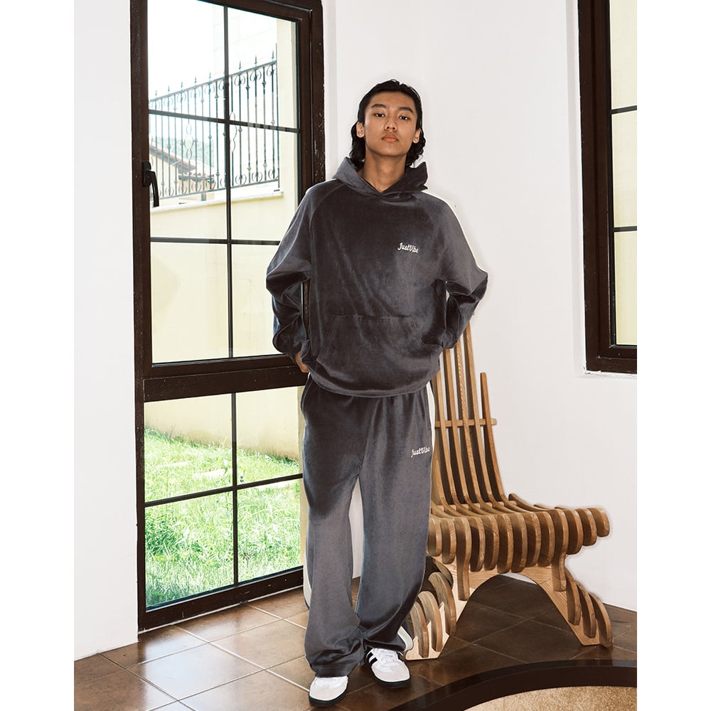• 同素材の【ベロアトラックパンツ】とセットアップで王道ストリートコーデに