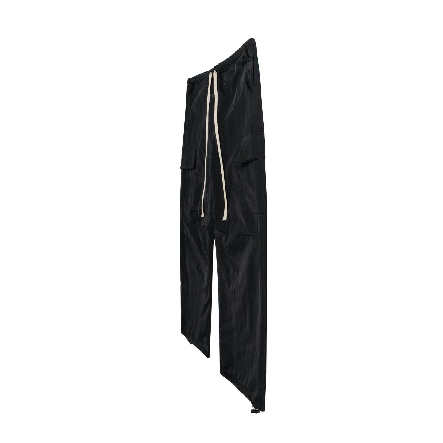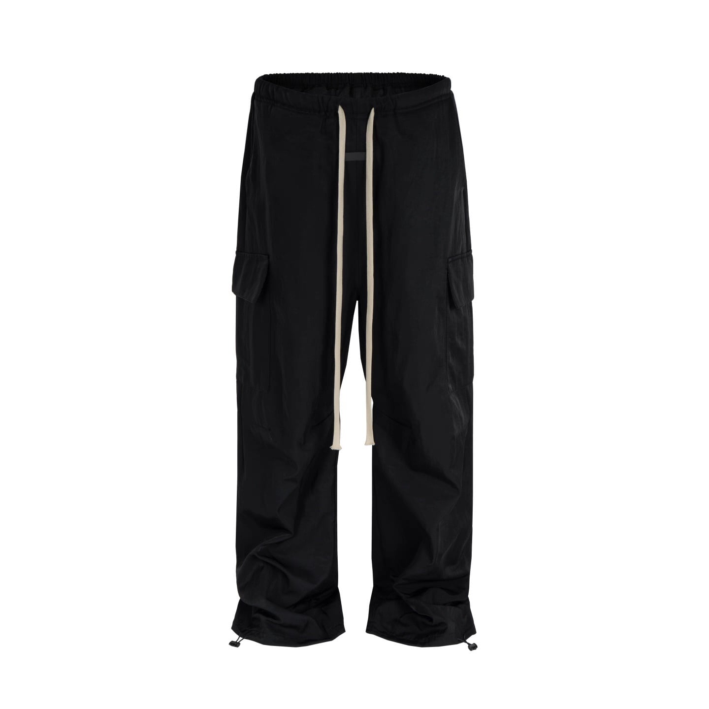 ウエストはゴム仕様でリラックスした履き心地ながら、長めのドローコードがアクセントとなり、ストリート感を演出します。
