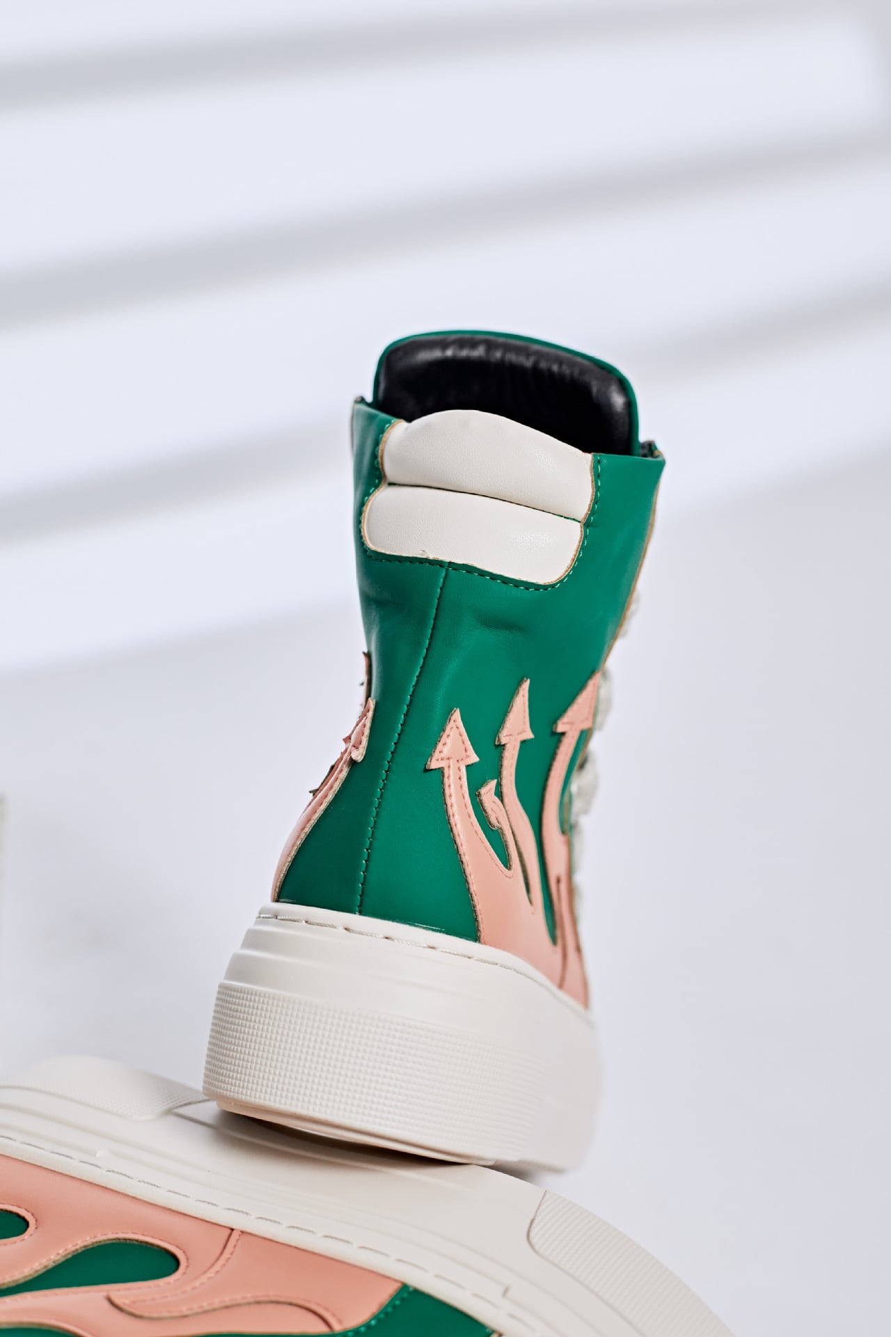 無骨さと個性を兼ね備えた、ハイカットタイプの厚底スニーカー。