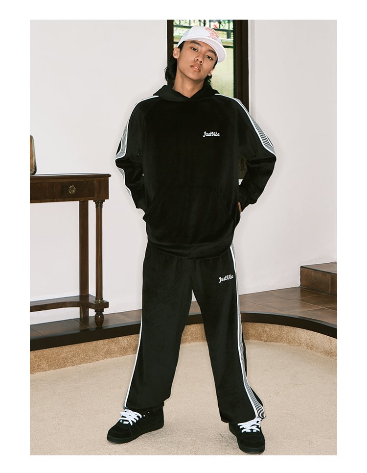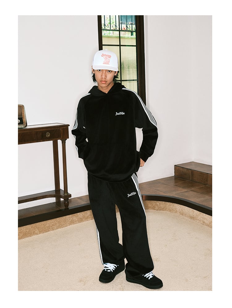 • 同素材のベロアパーカーと合わせたセットアップスタイルで統一感を