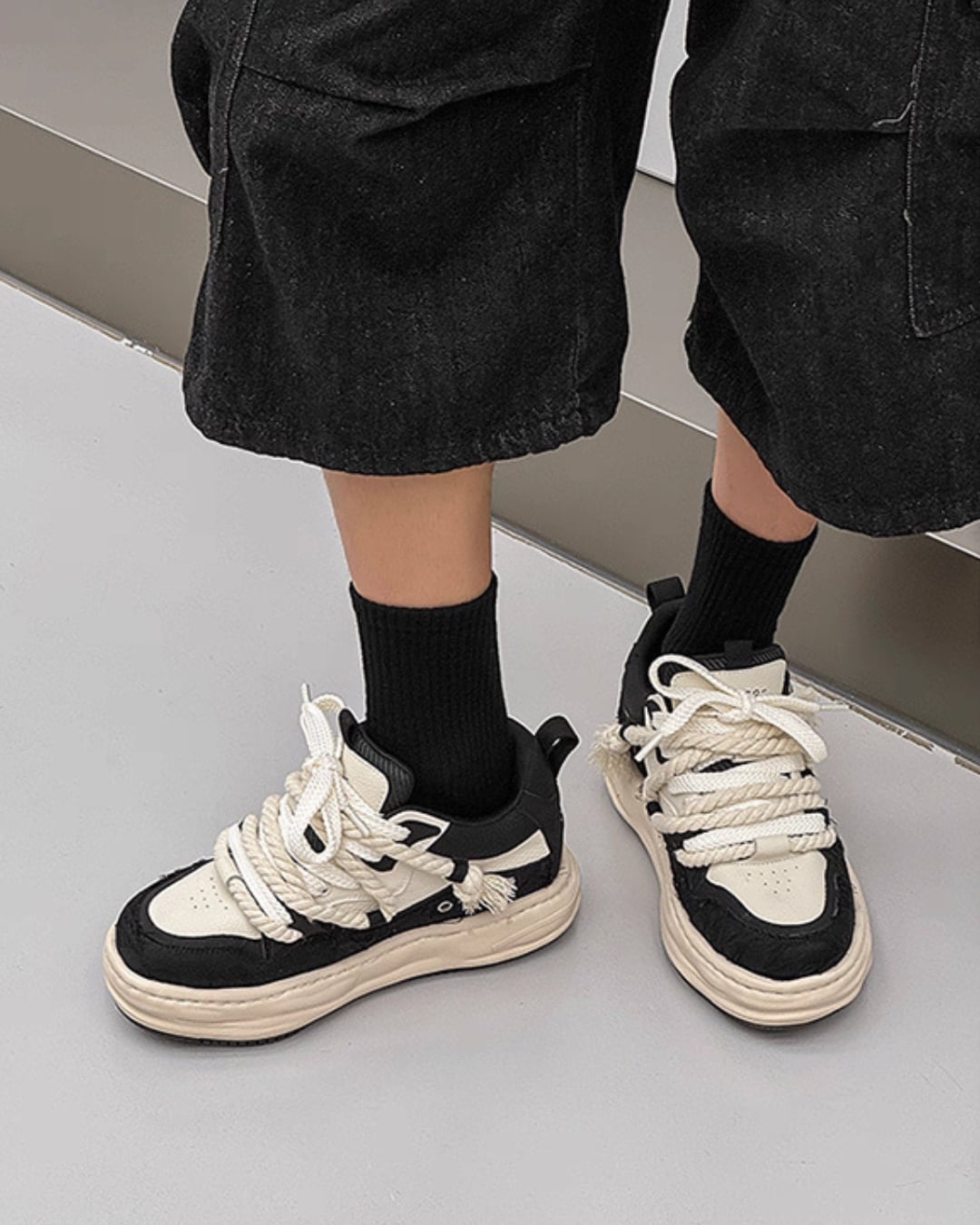 重厚なソールと太めのロープシューレースが目を引く「ディゾルブスニーカー」
