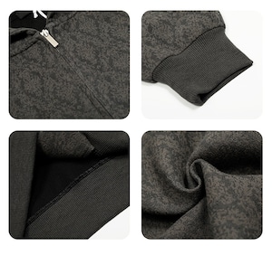 落ち着いたグレーをベースにしながらも、柄の奥行きと凹凸感が個性を引き立て、ストリートでも差がつく1枚に仕上がっています。