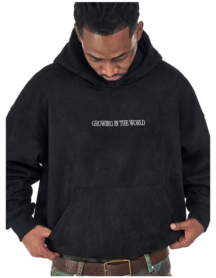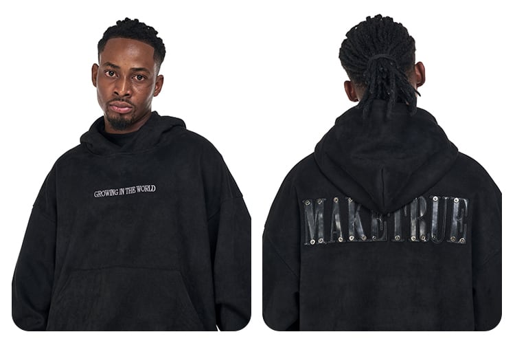 しっとりとした質感のフェイクスウェード素材を採用し、重厚感と高級感を両立させた「スウェードレターパーカー」