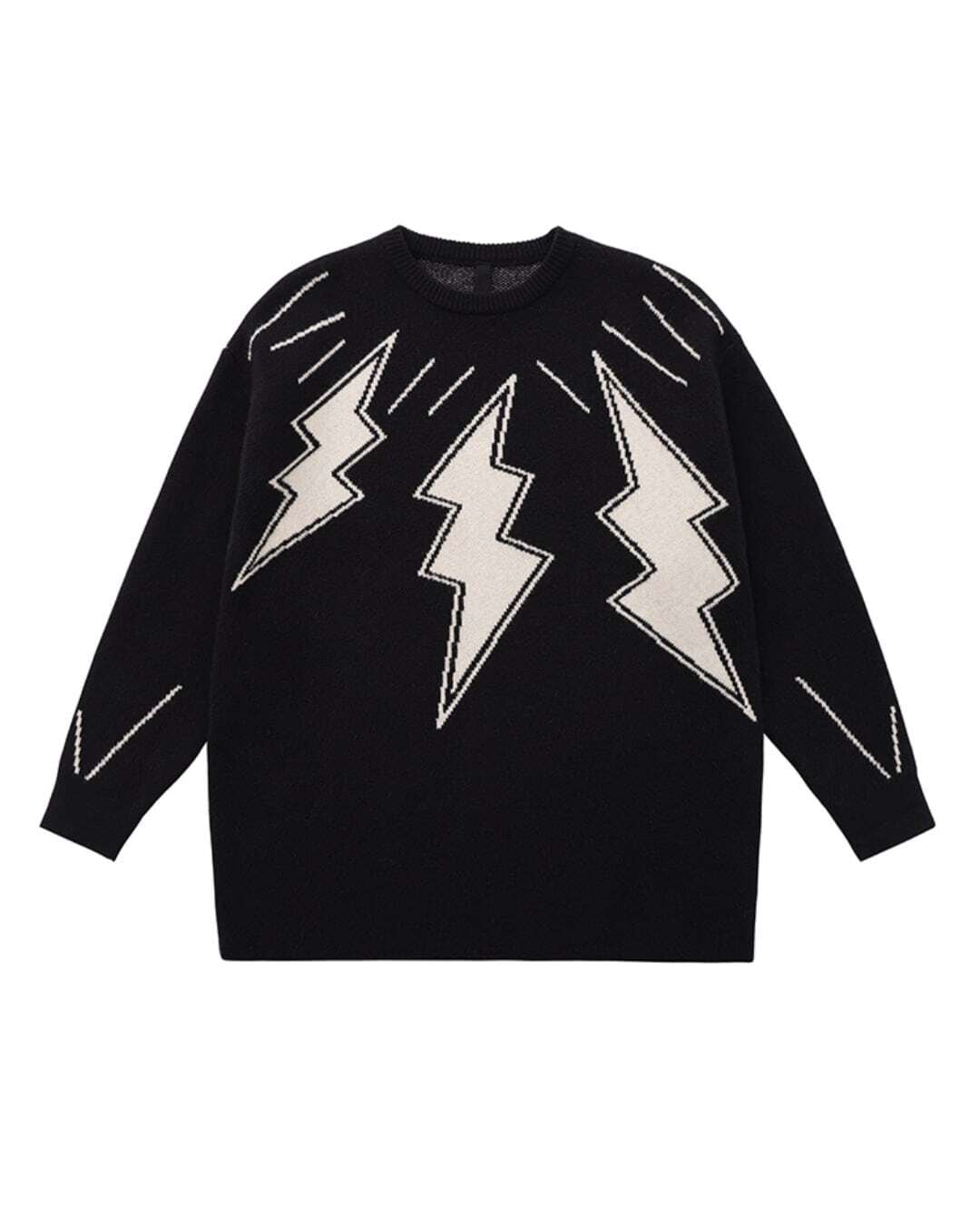 稲妻のように鋭いインパクトを放つニットに、