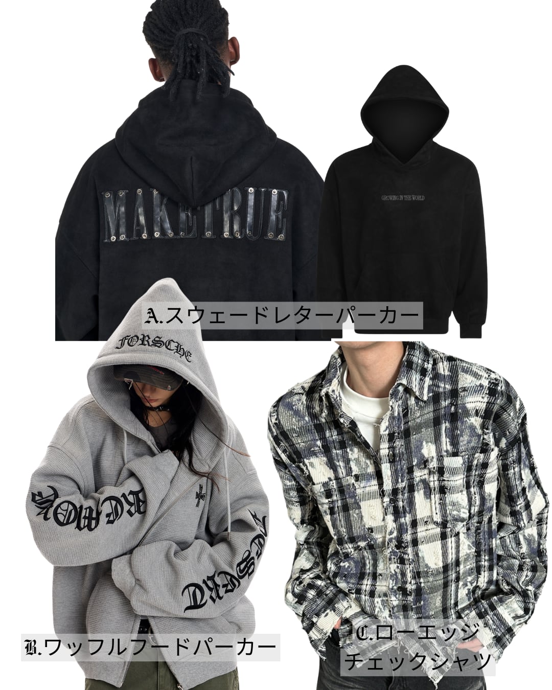 ・サイズのご指定やサイズにご不安がある際は、ご希望サイズもしくは身長体重をご注文ページ備考欄へご入力ください