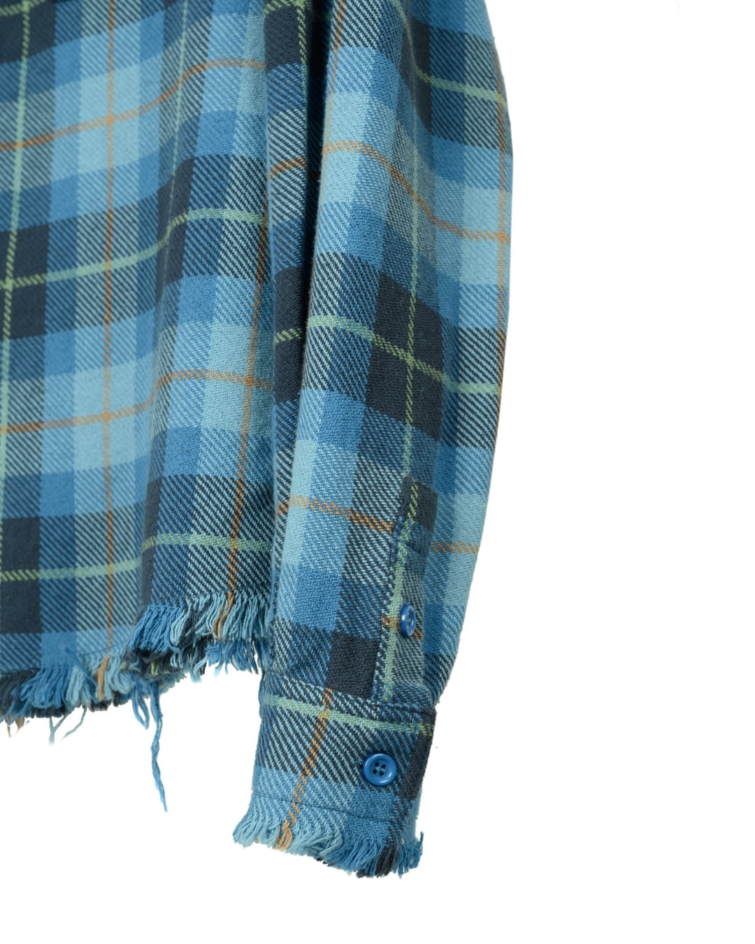 脚長高見え設計|ダメージショートチェックシャツ(SH00001)
