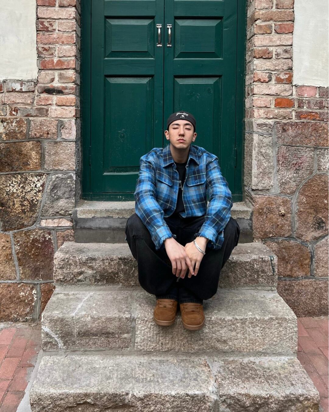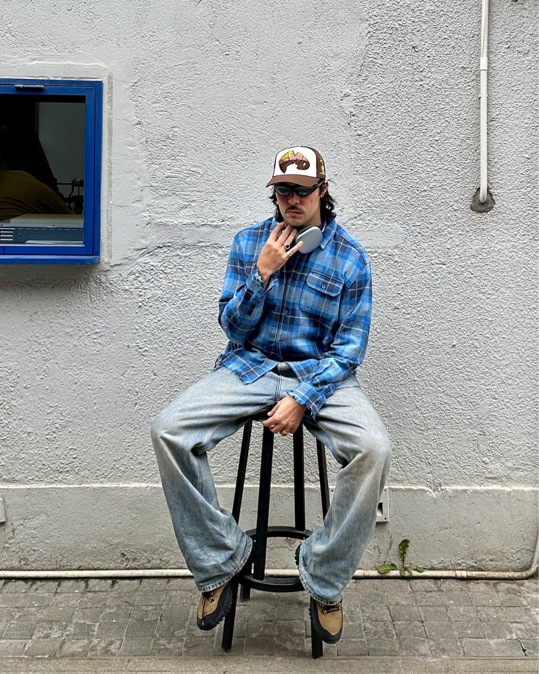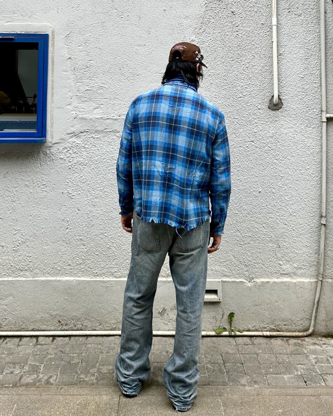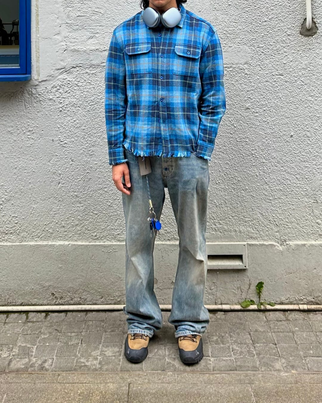 短めの着丈 × ゆったりした身幅 × 大きめのチェック柄。