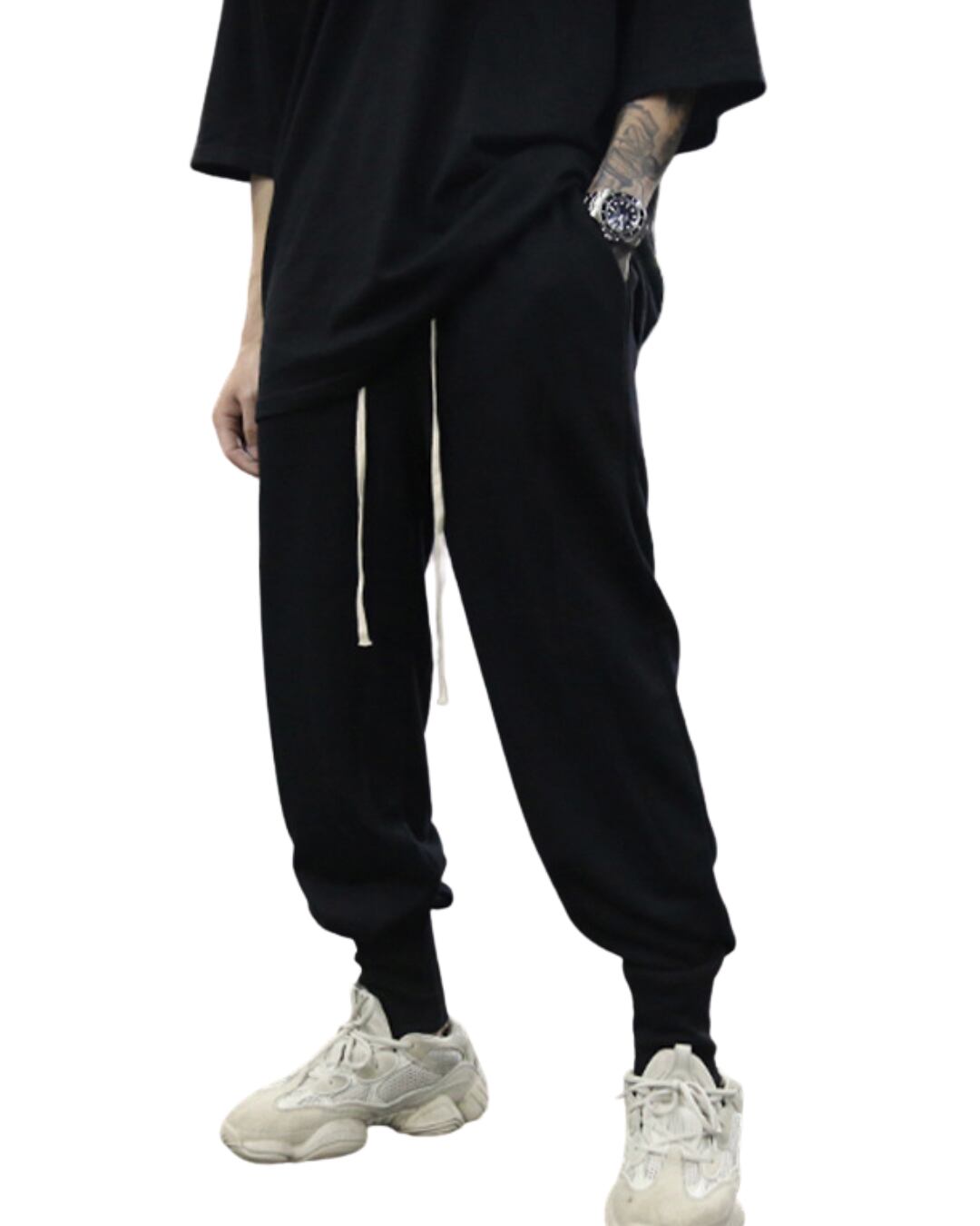 シルエットと素材感で“外でも成立するジョガー”に仕上げています。