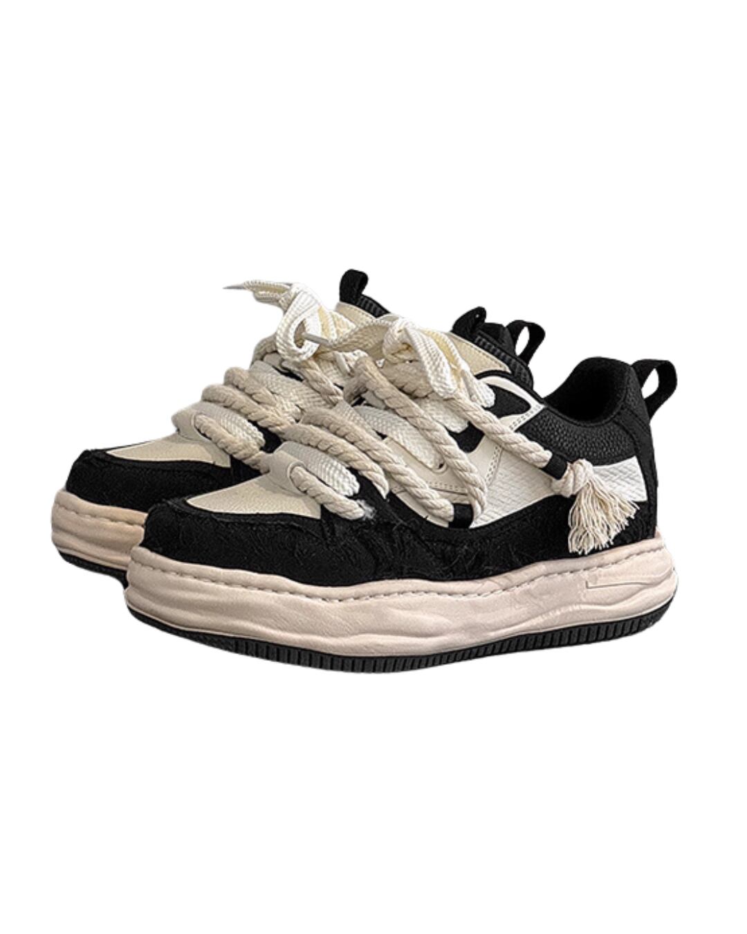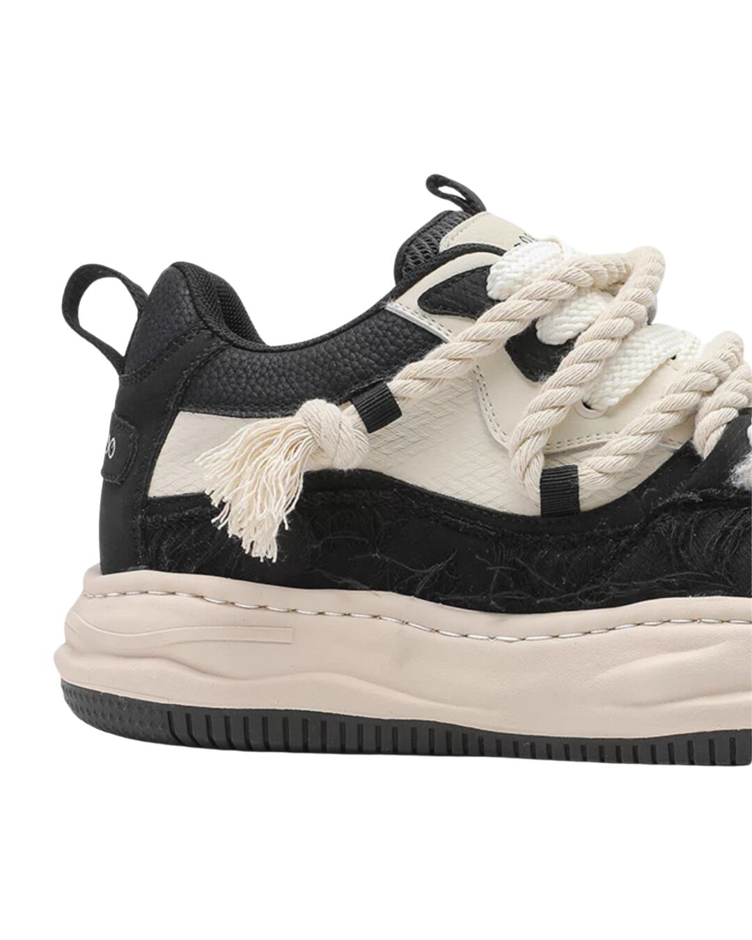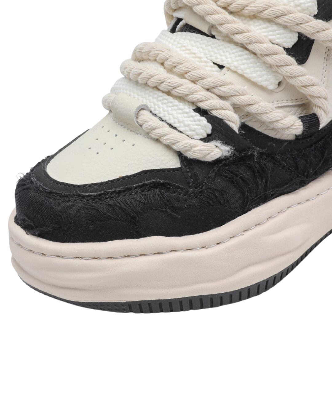 アッパーはレザー調PU・起毛素材・ナイロンを組み合わせた異素材ミックス。
