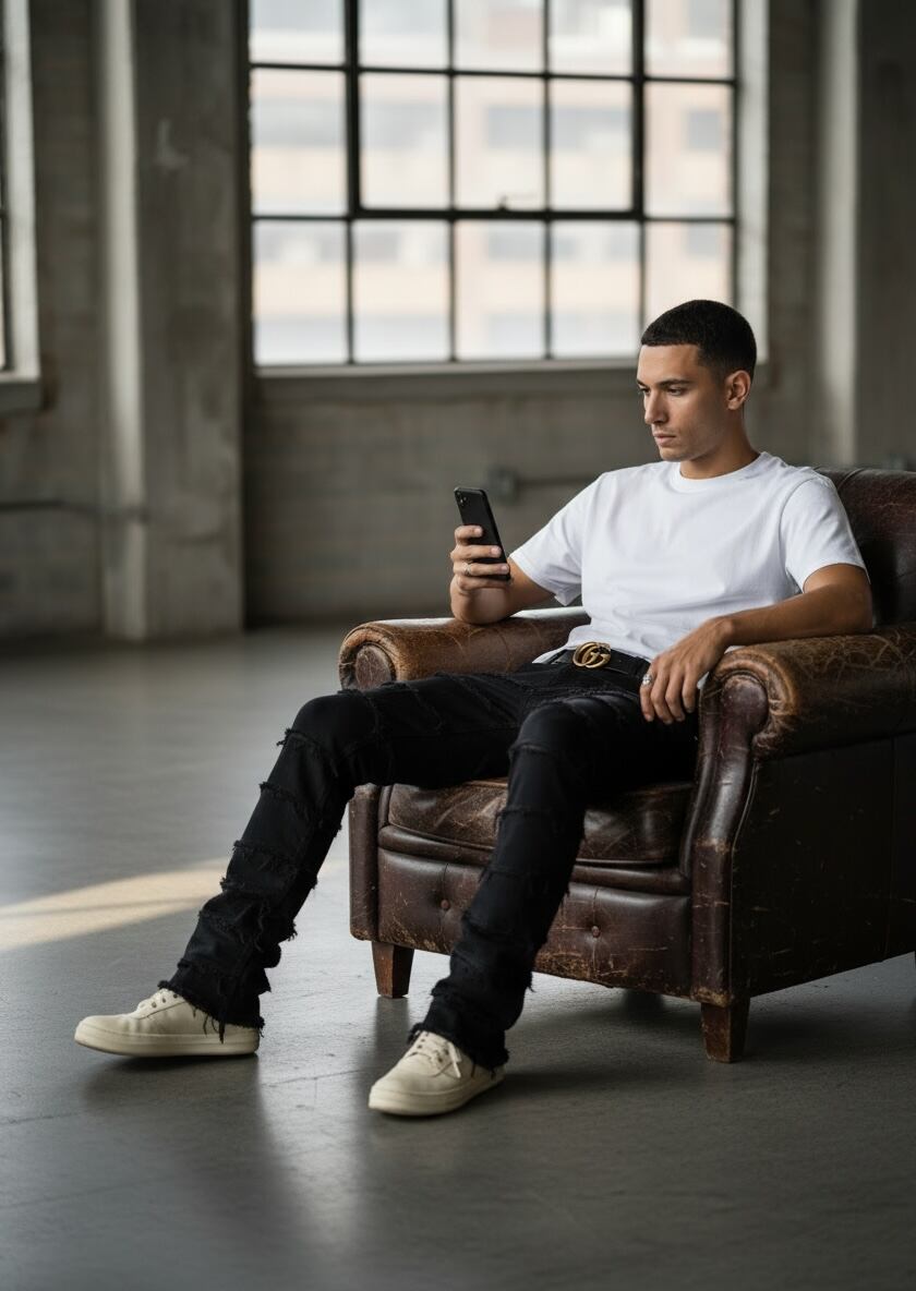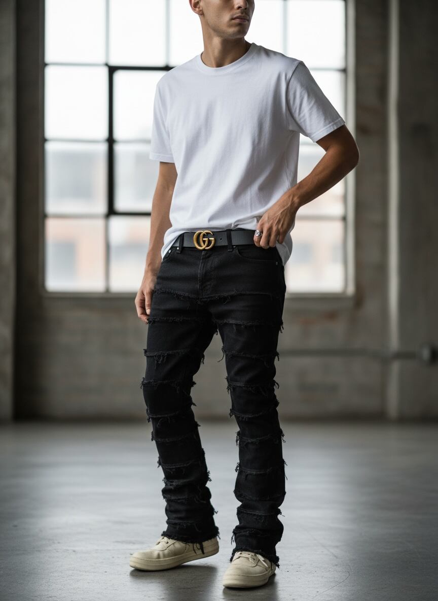 履くだけでストリートの雰囲気を作るブラックデニム。