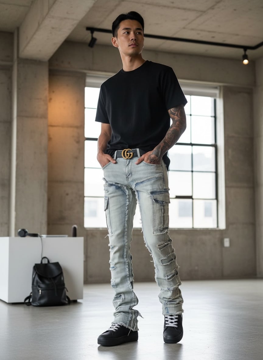スキニーの美シルエットに、カーゴの存在感。
