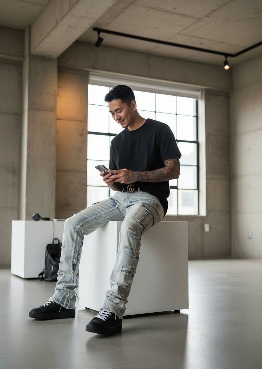 脚を細く見せながらストリート感を作る一本。