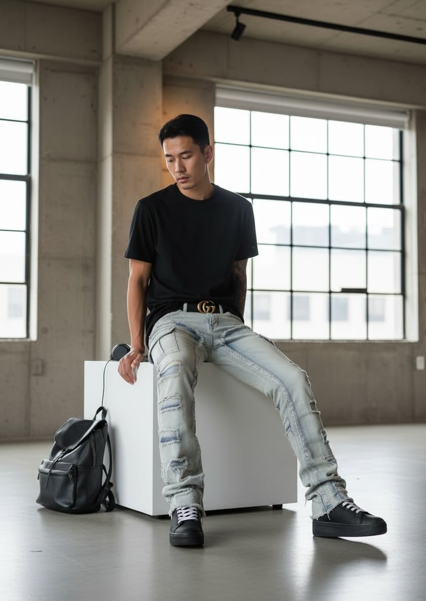 ダメージ加工とヴィンテージウォッシュにより、シンプルなトップスでもコーデに雰囲気が出ます。
