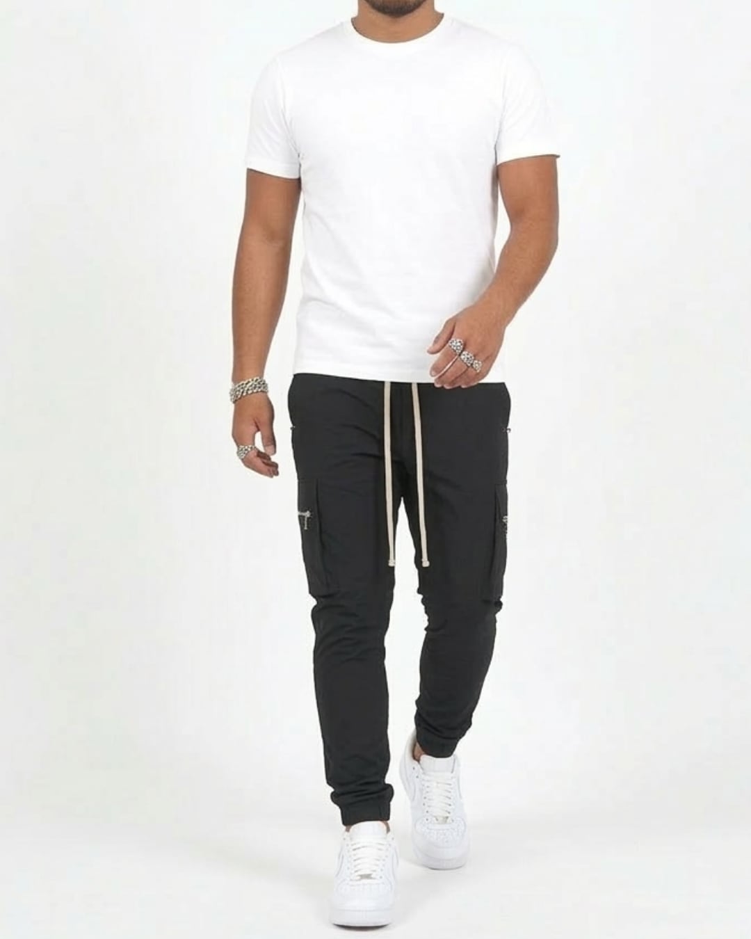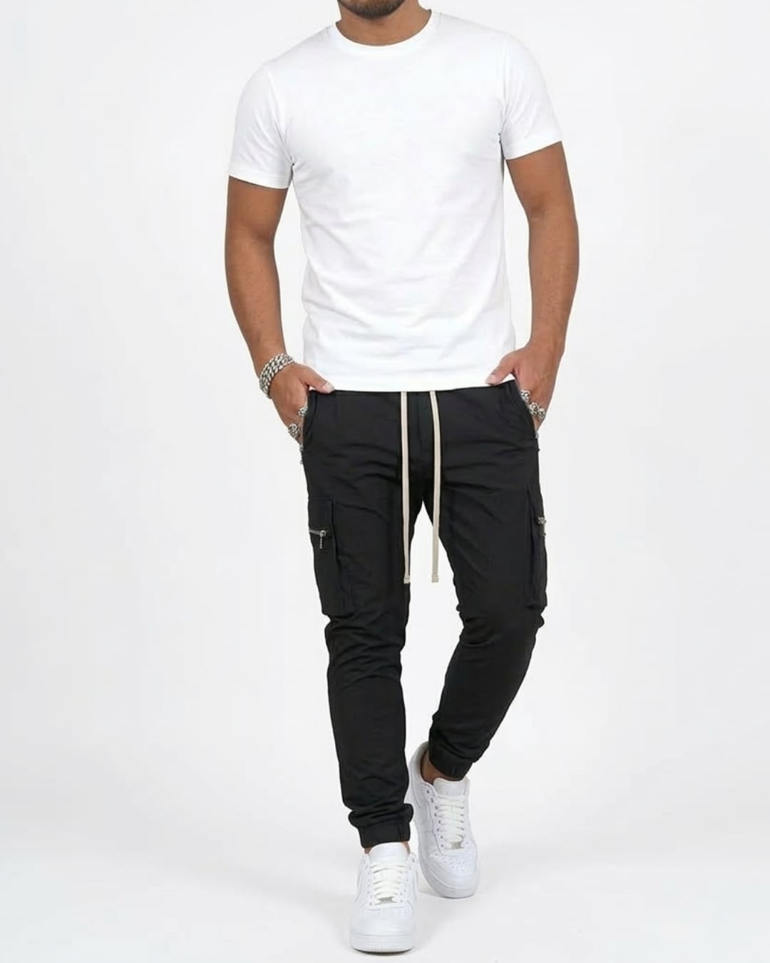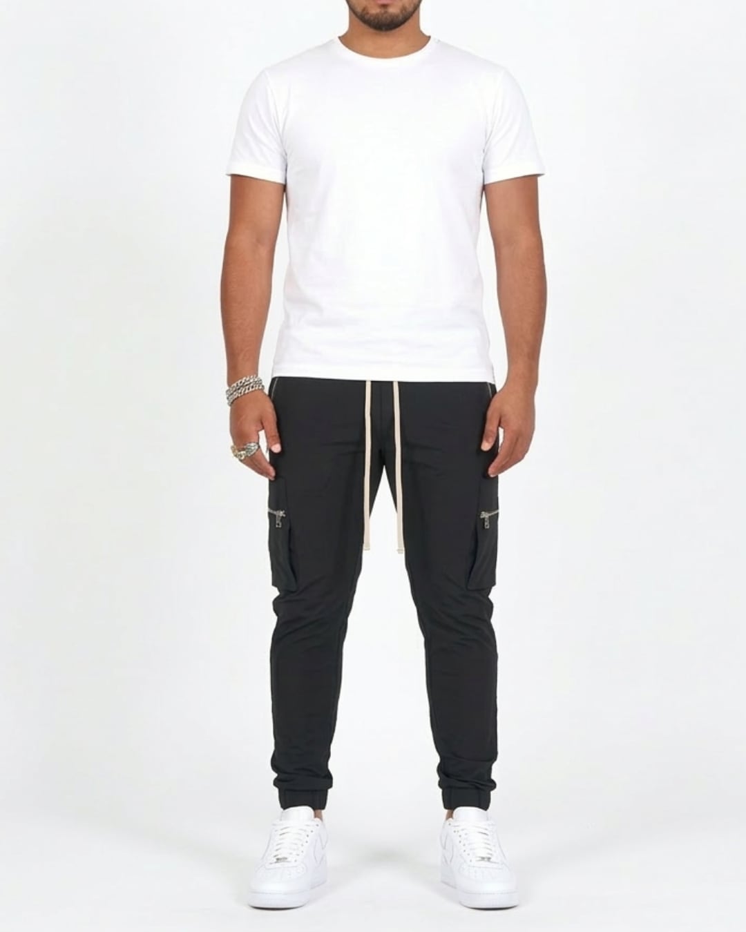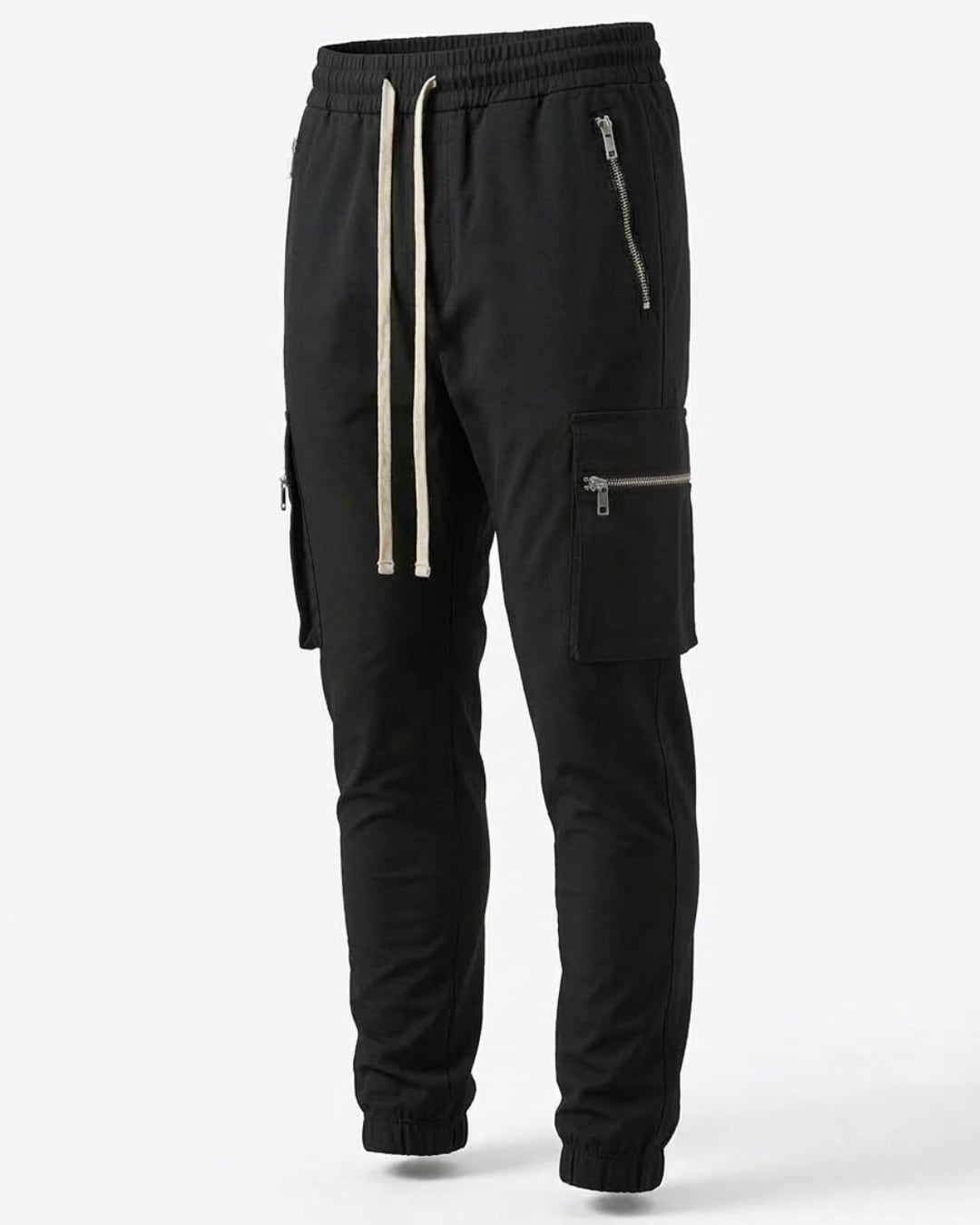 サイドポケットとジップデザインがアクセントになり、シンプルながらも存在感のある仕上がり。
