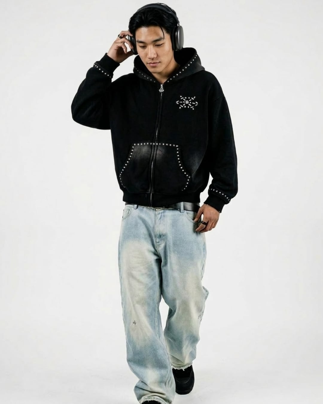 フードやポケット、胸元に施されたディテールが、無地には出せない存在感を演出。
